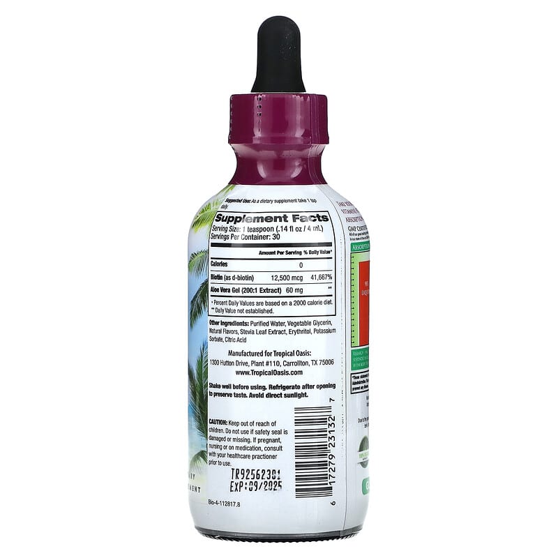 Giới thiệu sản phẩm Tropical Oasis Biotin Maximum Strength with Aloe Vera 12.500 mcg 4 fl oz (120 ml)