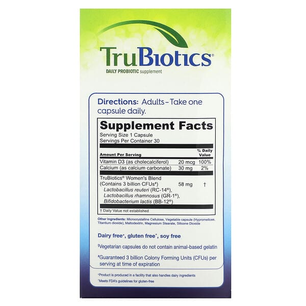 Thông tin sản phẩm TruBiotics, Women’s Digestive + Vaginal + Bone Health, 30 viên chay