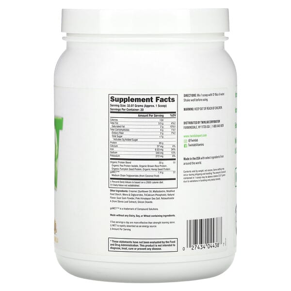 Protein thực vật Twinlab vị vani Pháp, 22,6 oz, nhập khẩu chính hãng từ Mỹ, bổ sung dinh dưỡng hoàn hảo cho người ăn chay., UPC: 027434044387