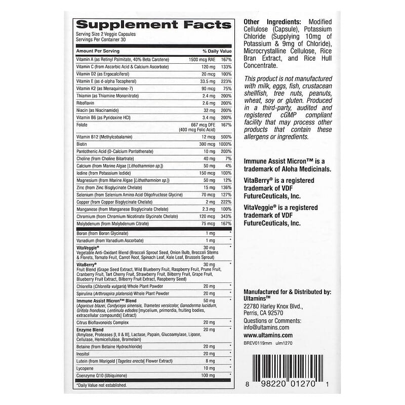 Giới thiệu sản phẩm Ultamins Men’s Multi-Vitamin with CoQ10 Mushrooms Enzymes Veggies & Berries 60 Veggie Capsules