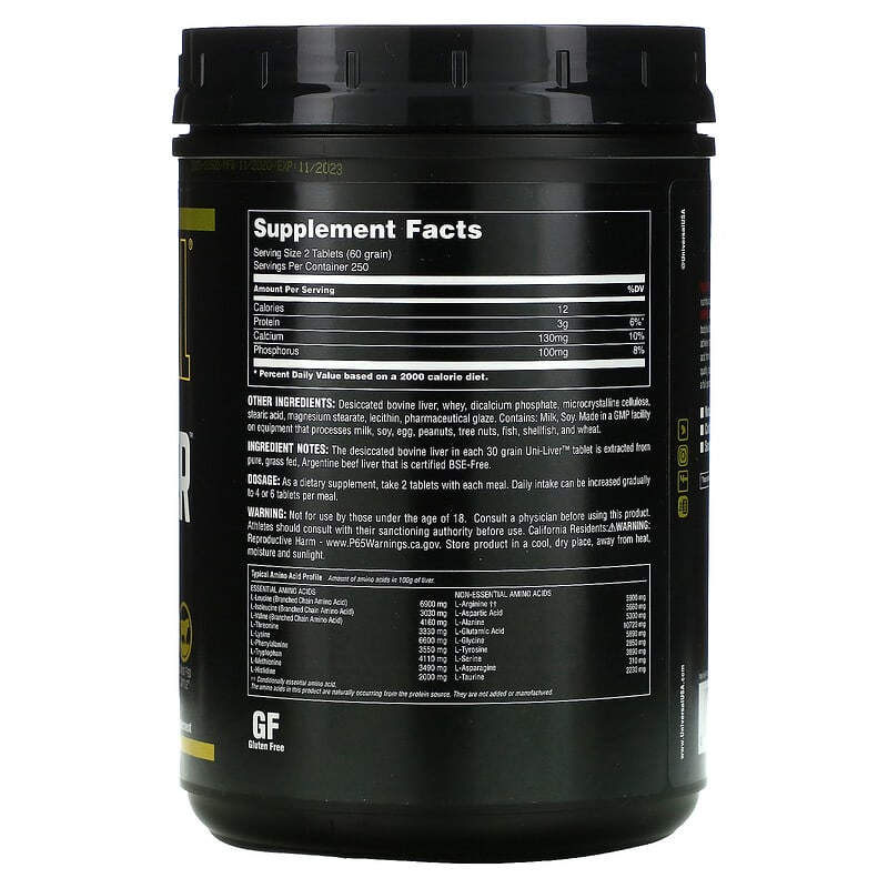 Giới thiệu sản phẩm Universal Nutrition Classic Series Uni-Liver Argentine Beef Liver 500 Tablets