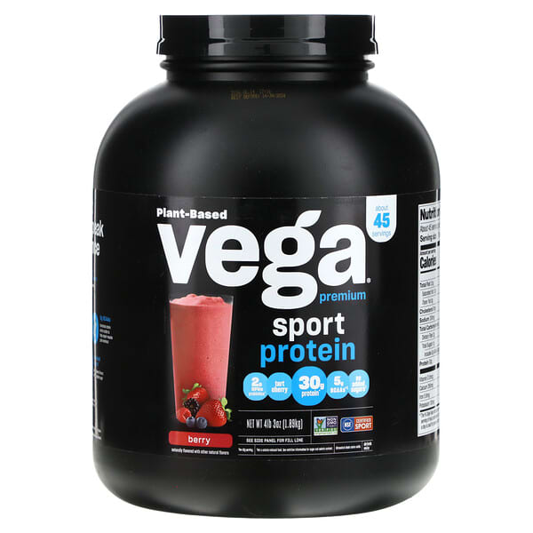 Giới thiệu về sản phẩm Vega, Sport, Plant Based Premium Protein, Berry, 4 lb 3 oz (1,89 kg)