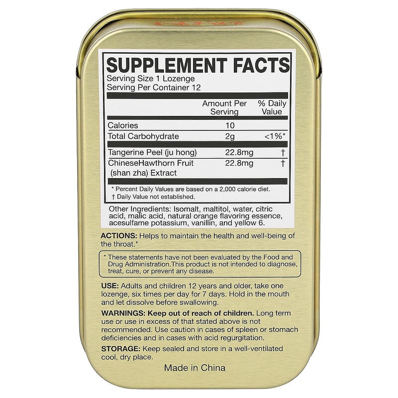 Viên ngậm họng vàng Golden Throat vị cam giúp giảm đau họng, tăng cường sức khỏe, tiện lợi cho mọi người. 12 viên dễ sử dụng., UPC 049987015119