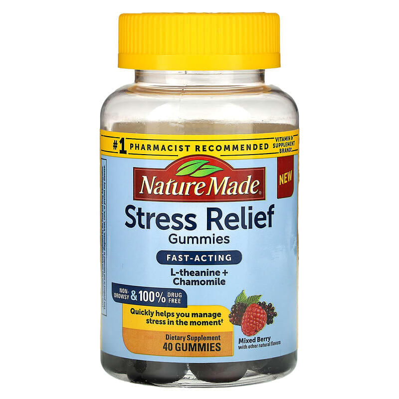 Giới thiệu sản phẩm Nature Made Stress Relief Gummies. Fast-Acting Mixed Berry 40 viên nhai