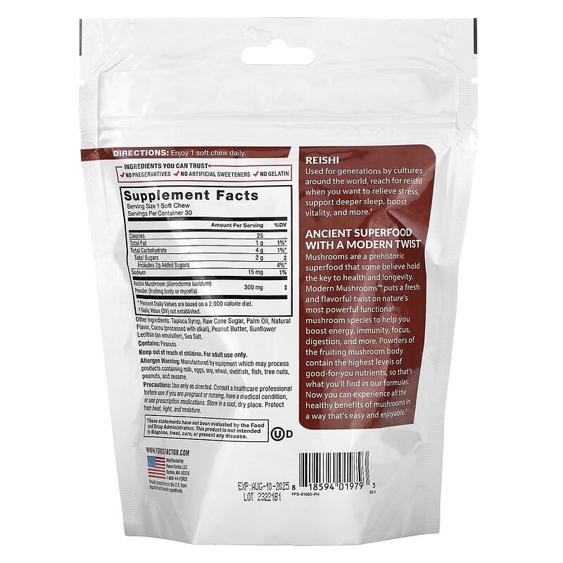 Viên nhai nấm Reishi vị Sô cô la Bơ đậu phộng Force Factor 30 viên hỗ trợ sức khỏe, tăng cường miễn dịch và giảm stress., UPC 818594019793