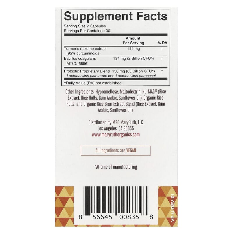 Giới thiệu sản phẩm MaryRuth’s Probiotic Turmeric + 62 tỷ CFU 60 viên (31 tỷ CFU/viên)