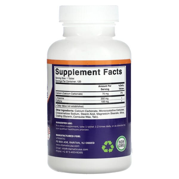Thông tin sản phẩm Vitamatic, Caffeine & L-Theanine, 120 viên