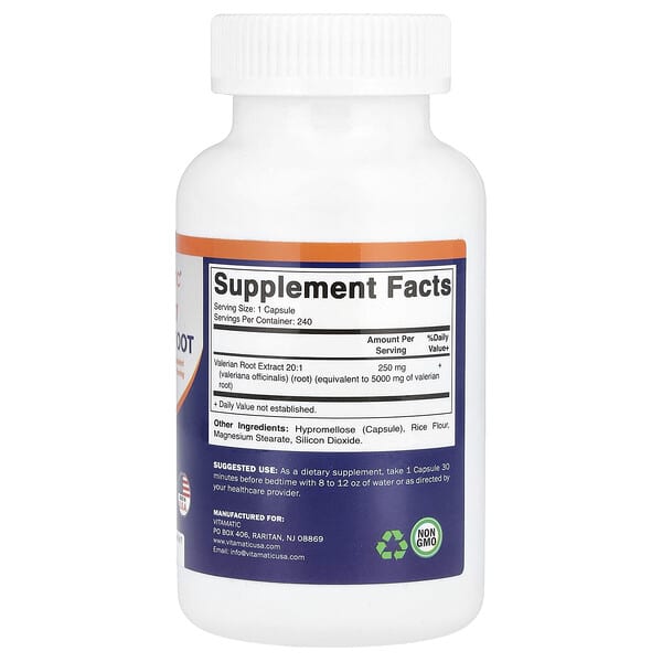 Thông tin sản phẩm Vitamatic, Valerian Root, High Potency, 5.000 mg, 240 viên chay