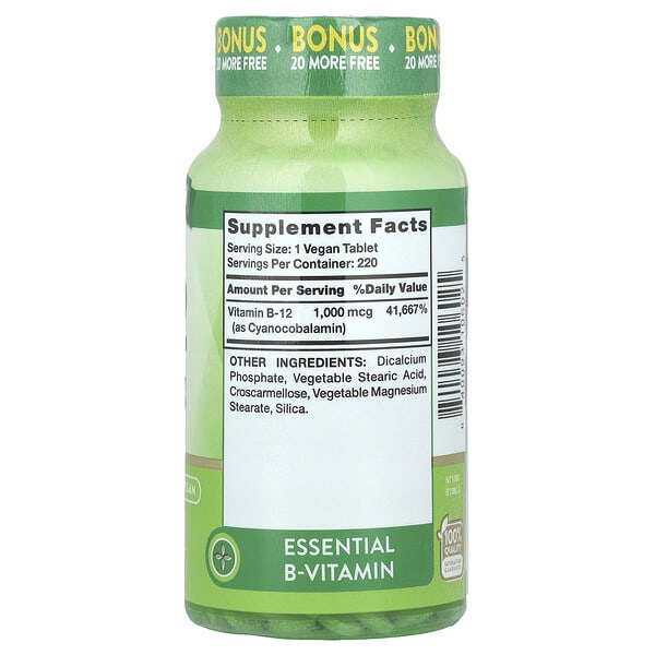 Vitamin B-12 Nature's Truth 1.000 mcg, 220 viên, bổ sung năng lượng và sức khỏe, sản phẩm chính hãng nhập khẩu từ Mỹ., UPC: 840093106025