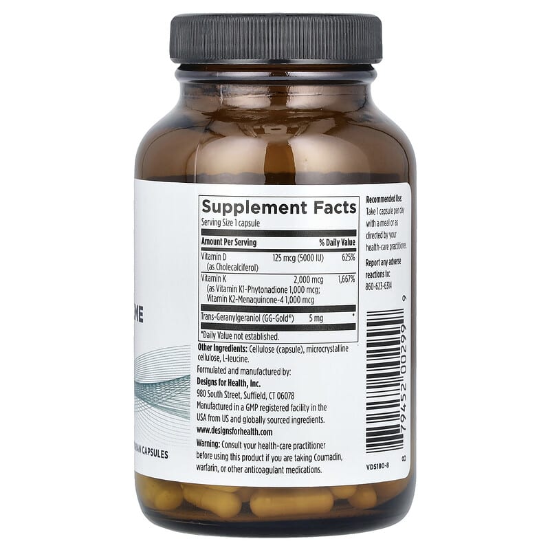 Vitamin D Supreme Designs For Health kết hợp K1 và K2, 180 viên chay hỗ trợ sức khỏe xương và miễn dịch., UPC 879452002999