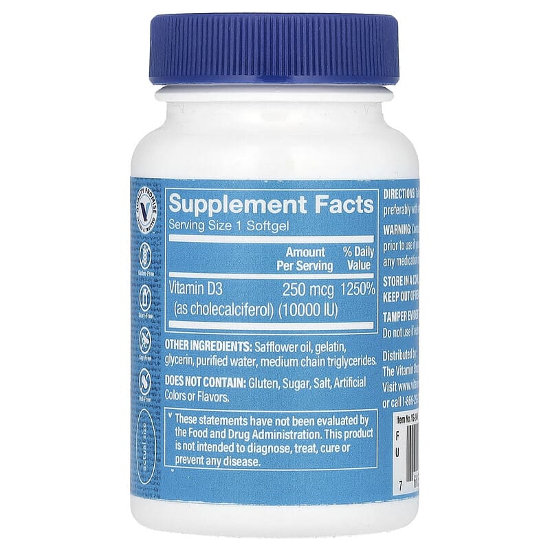 Vitamin D3 250 mcg 10000 IU The Vitamin Shoppe giúp tăng cường sức khỏe xương và miễn dịch, hỗ trợ hấp thu canxi hiệu quả., UPC 766536024247