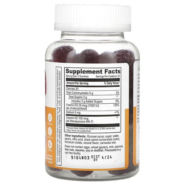 – Vitamin K2: 100 mcg (Menaquinone MK-7).