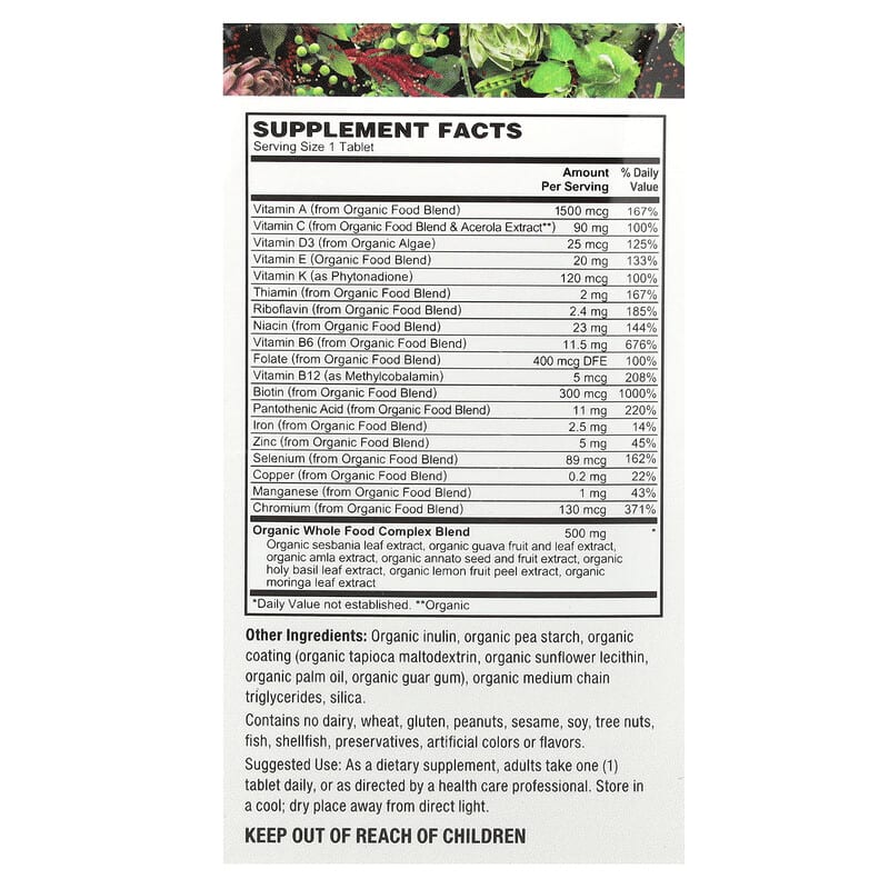 Biotin (from Organic Food Blend) | 300 mcg | 1000% |