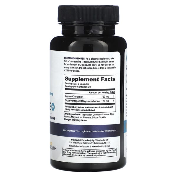 Thông tin sản phẩm Vitauthority, Berberine Plus with Dihydroberberine & Ceylon Cinnamon, 60 viên chay