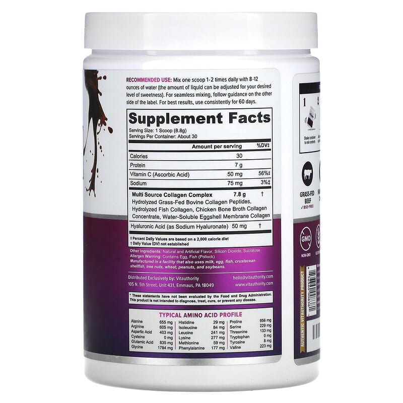 Giới thiệu sản phẩm Vitauthority Multi Collagen Protein Plus Vitamin C Hyaluronic Acid Chocolate 9.3 oz (264 g)