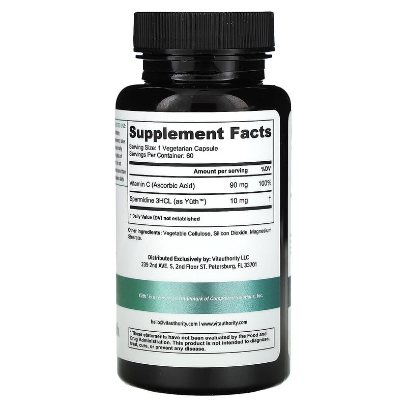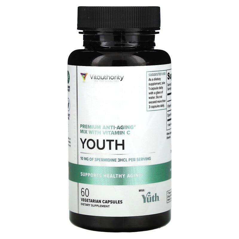 Vitauthority Youth Premium Anti-Aging Mix chứa những thành phần quan trọng giúp nâng cao sức khỏe và hỗ trợ quá trình lão hóa. Một trong những thành phần chủ yếu là Spermidine 3 HCl, kết hợp với Vitamin C.