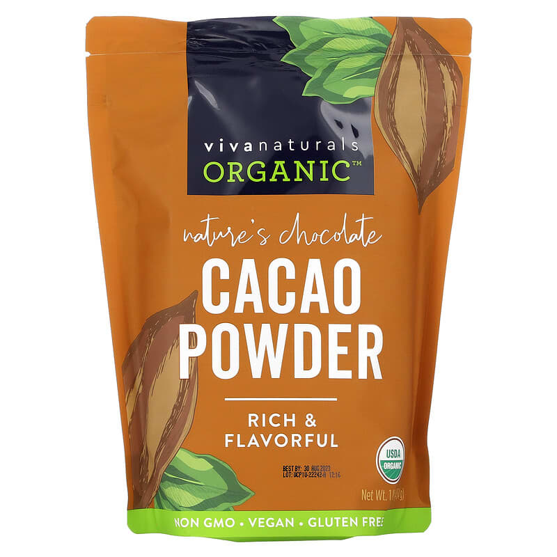 Bột ca cao hữu cơ Viva Naturals 1 lb (454 g) giàu dinh dưỡng, phù hợp cho chế độ ăn uống lành mạnh, tuyệt vời cho các món tráng miệng. 700465936752