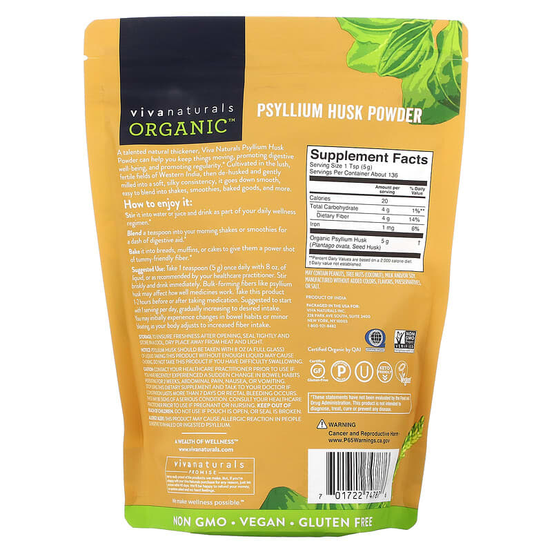 Giới thiệu sản phẩm Viva Naturals Organic Psyllium Husk Powder 24 oz (680 g)