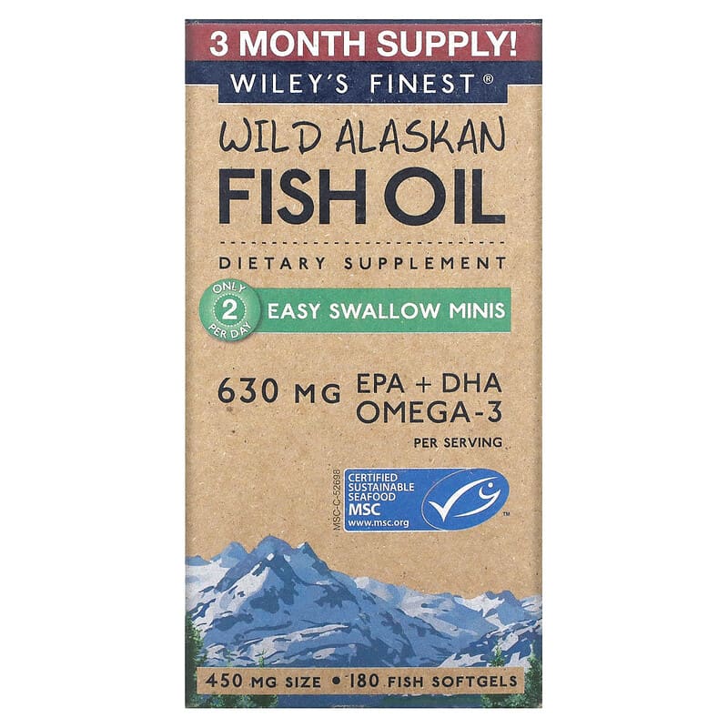 Giới thiệu sản phẩm Wiley’s Finest Wild Alaskan Fish Oil Easy Swallow Minis 450 mg 180 Fish Softgels