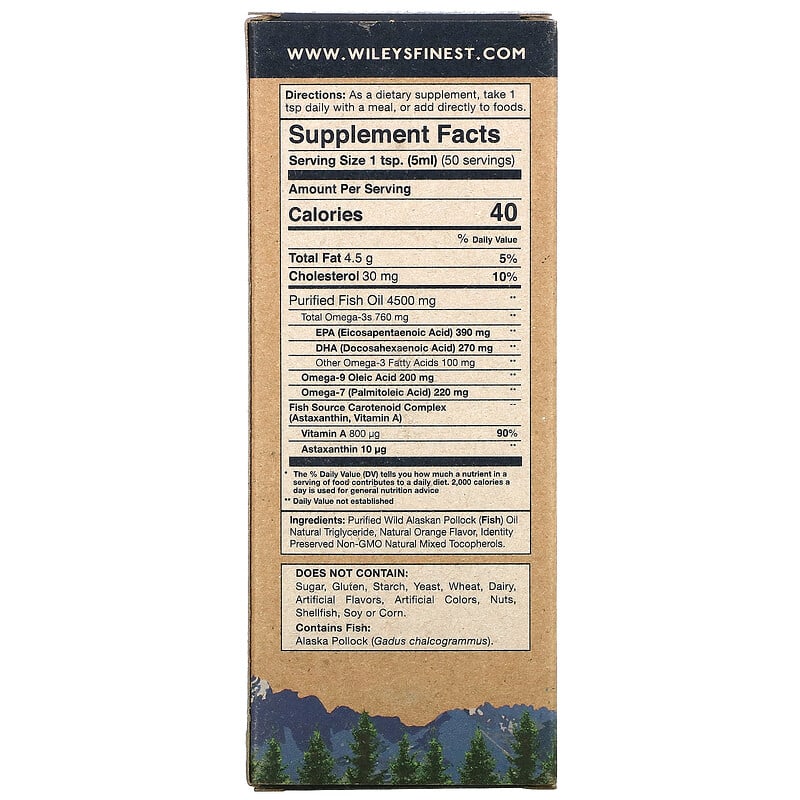 Dầu cá tự nhiên Wiley's Finest Wild Alaskan hương cam 250ml