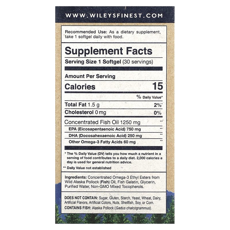 Giới thiệu sản phẩm Wiley’s Finest Wild Alaskan Fish Oil Peak EPA 1.250 mg 30 Fish Softgels