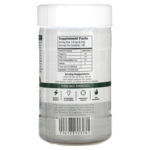 Yerba Mate Plain Instant Herbal Tea, unsweetened, 2.82 oz, authentic US import for a natural energy boost., UPC: 716123123761