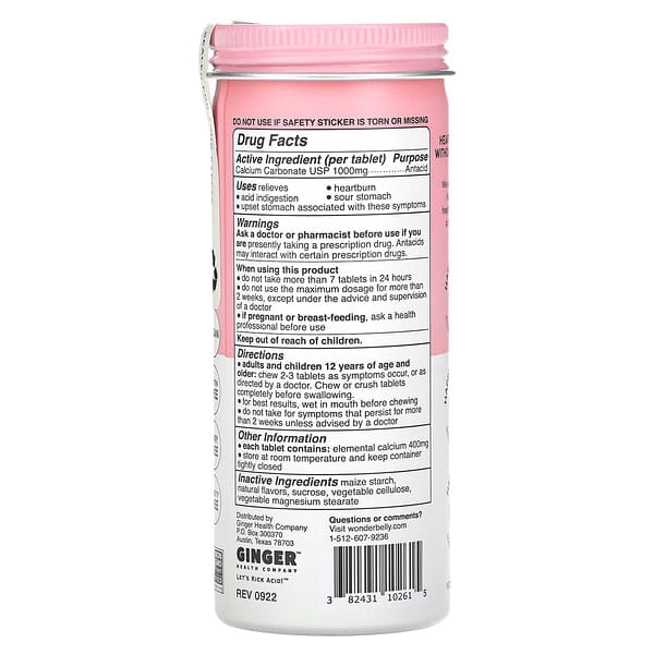 Viên nhai trung hòa axit dạ dày Wonderbelly hương sữa dâu tây giúp giảm triệu chứng khó tiêu, bảo vệ dạ dày, dễ sử dụng., UPC 382431102615