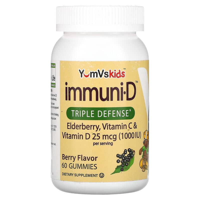 Giới Thiệu Về Sản Phẩm Yum-Vs Kid’s Elderberry Vitamin C & Vitamin D Triple Defense Berry 25 mcg (1.000 IU) 60 Gummies