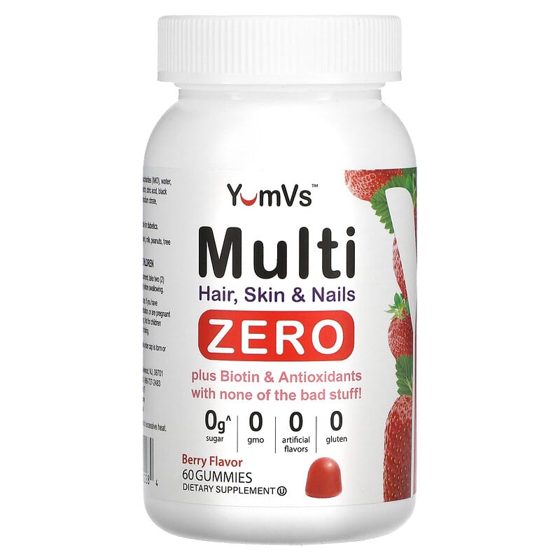 Yum-Vs Multi Hair Skin & Nails Zero Berry 60 Gummies hỗ trợ sức khỏe tóc, da, móng, vị berry ngon miệng, dễ sử dụng. 810048612284