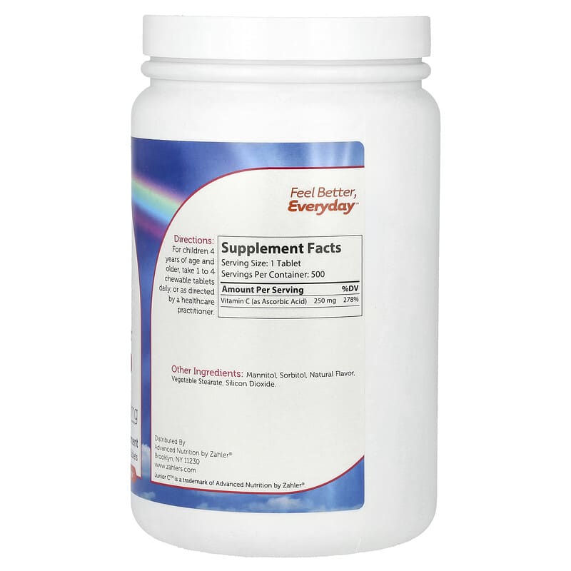Giới thiệu sản phẩm Zahler Junior C Advanced Chewable Vitamin C Natural Orange 250 mg 500 viên nhai