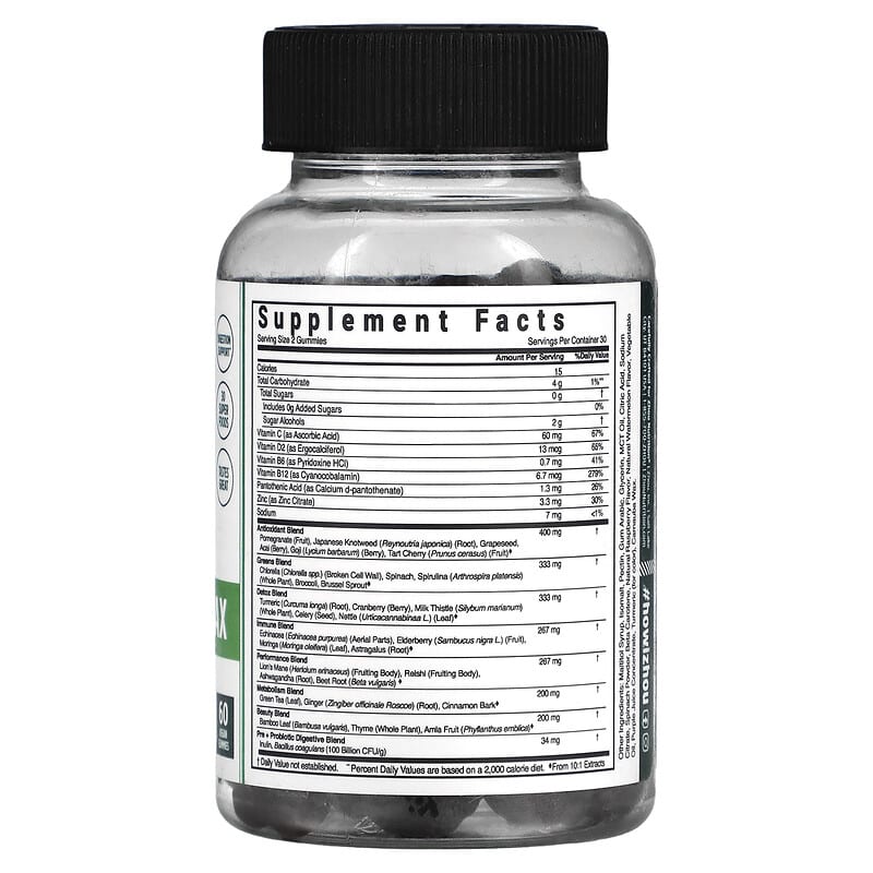 Zhou Nutrition Supergreens Max Raspberry chứa nhiều thành phần quý giá, bao gồm: