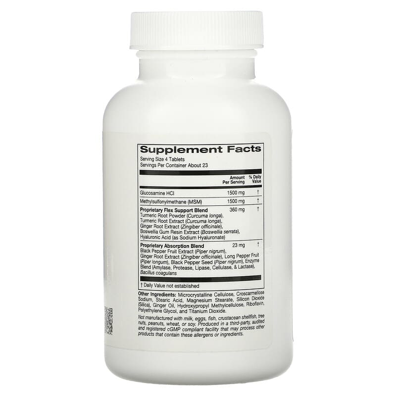 4. Proprietary Flex Support Blend: Gồm bột củ nghệ, chiết xuất củ nghệ, chiết xuất gừng, chiết xuất nhựa Boswellia và axit hyaluronic. Các thành phần này đều có tác dụng hỗ trợ sức khỏe khớp và giảm viêm.